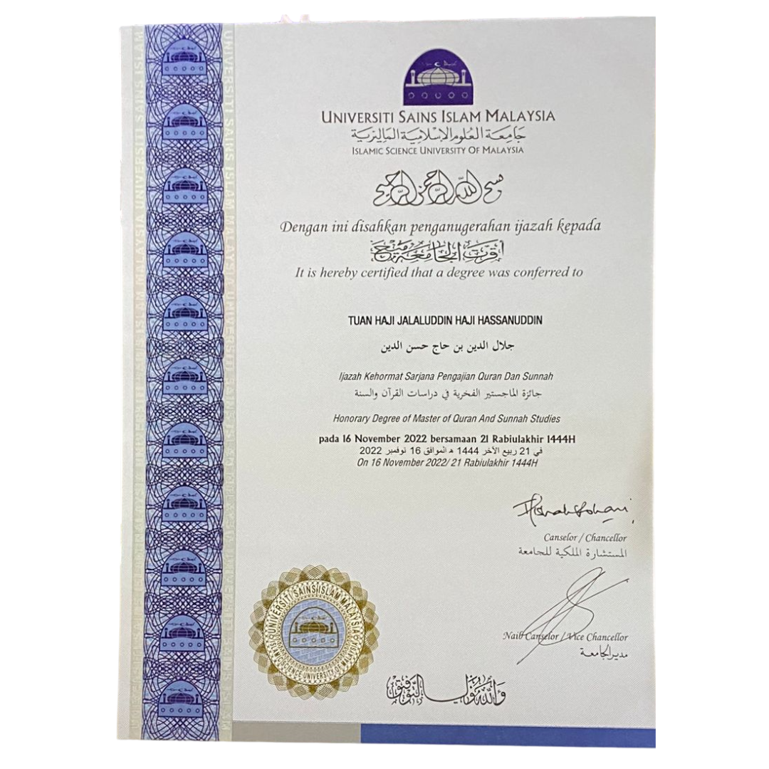 Ijazah Kehormat Sarjana Fakulti Pengajian Quran Sunnah Universiti Sains Islam Malaysia